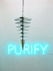 The suggestive qualities of the exhibition provoke a form of escapism not unlike that of a spiritual experience. Marcel Duchamp’s transfiguration of everyday objects is considered art at the second degree, but he never had much of a sense of humor. With Sylvie Fleury, we enter art at the third level, because there is a constant reminder of irony in her use of epoxy and sequins. Art may never be the same again, but the real fun is that Fleury seems to be telling us that it’s all a big spoof.