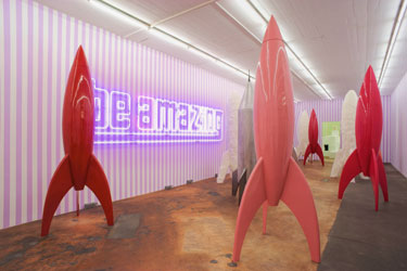 You can’t help feel that Fleury’s show has come at just the right time. Her exuberance is an instant antidote to the reigning gloom. The exhibition may not have set out to be joyful, but it is. It’s like walking into a contemporary Alice’s Wonderland, with undersized rockets instead of flower pots and oversized popcorn instead of hats.