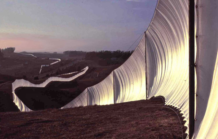 Running Fence, Sonoma and Maric Counties, California 1972-76, Photo Jeanne-Claude / © Christo 1976