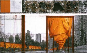 The Gates, Project for Central Park, NYC, Drawing in two parts / © Christo 2004, photo Wolfgang Volz