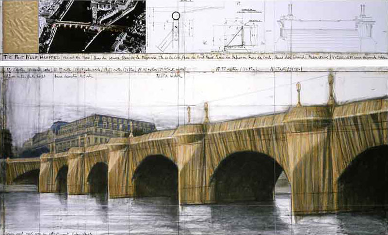 The Pont Neuf Wrapped, Paris, Drawing 1985 in two parts / © Christo 1985, photo Wolfgang Volz