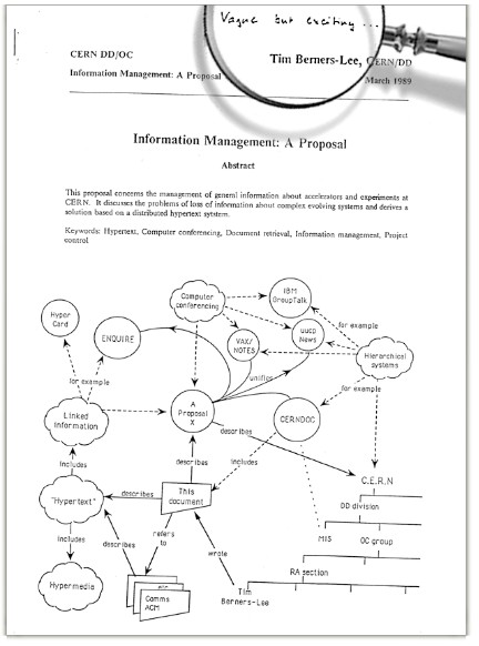 ’I wrote the information management proposal 20 years ago, but 20 years ago nothing happened’ said Berners-Lee during the www@20 celebration organized on March 13, 2009 at the CERN . ‘Sendall gave the go-ahead and allowed me to purchase a NeXT machine, but it was a wink, rather than a nod. The project only took off when random people got involved and that’s what was so exciting.’