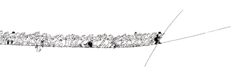 Paris Match, Punch and L’Express were the first to publish his little figurines lost in their finely drawn environments. Sempé’s remarkable ability to be funny without ever being mean introduced gentleness into humour, something that post-war France was evidently ready for.