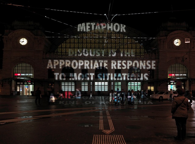 Basel Bahnhof, November 5 – 8, 2009. Truisms © 2009 Jenny Holzer, Photo: Serge Hasenböhler