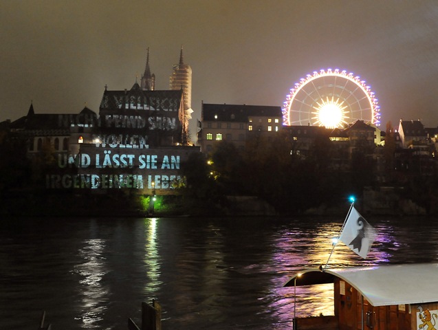 Szymborska’s poems are the main body of the texts used to light up Basel’s Bahnhof, Rathaus and cathedral, and currently the Lindenhof over the Limmat in Zurich. Margarethenhügel, Binningen near Basel will be graced with the projections in the second week of January, 2010.