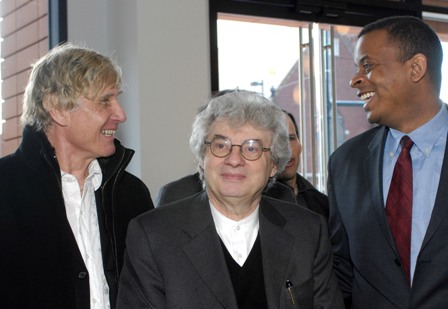 Mario Botta flanked by Andreas Bechtler on left and Anthony Foxx, mayor of Charlotte on right at inauguration on 2 January 2010 – Photo Nancy Pierce