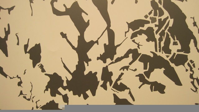 Schewadron’s mixed media installations cover three types of works. White random etchings bite into large swaths of metal panelling, delicately printed layers of plexiglas play with textures and colours, tiny screens come alive with drifting shapes that dissolve and recompose (watch one of the Metamorphoses). They share the ability to absorb and tantalize.