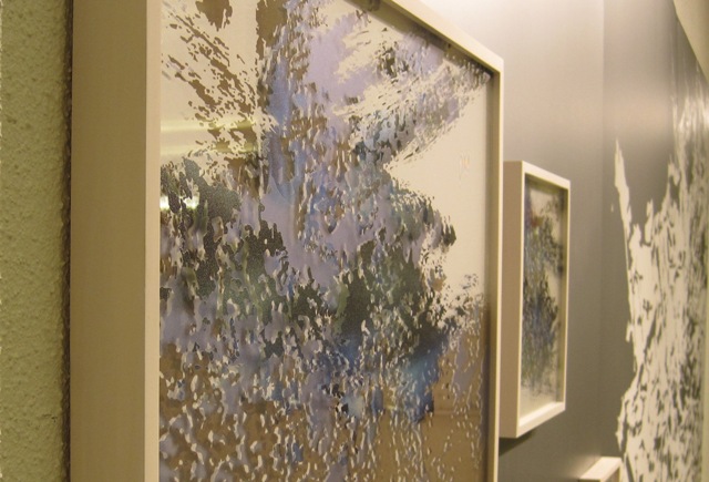 Lalie Schewadron installation, with a layered plexiglass painting in the forefront