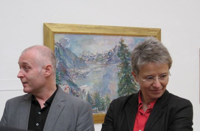 Bernard Fibisher, Director museum and Anne-Catherine Lyon, Vaud culture minister present Oskar Kokoshka view of the Leman, 1 June 2010