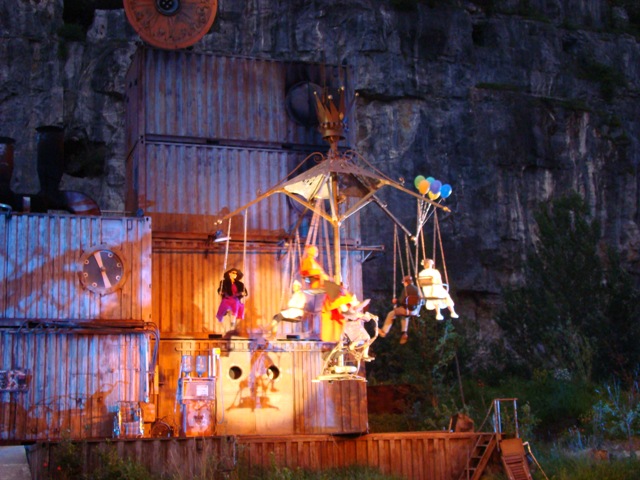 This is the fourth time the Karl’s kühne Gassenschau has taken over the quarry for the summer months, after r.u.p.t.u.r.e in 1995, t.r.a.f.i.c in 2001 and akua in 2004 and 2005.
