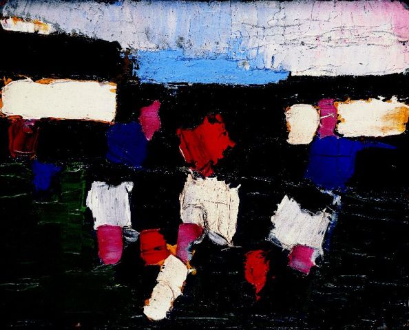 The year marks yet another turn. De Staël acquires a new fluidity in his painting by experimenting with a technique that rubs out the contours, blending them in with neighbouring colours.