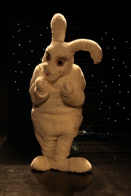 The latest event is something different altogether. It starts with a six-foot tall white rabbit throwing up on stage. But don’t take fright, he’s only vomiting the pieces of shiny material used for music hall costumes that he had previously stuffed down his throat.