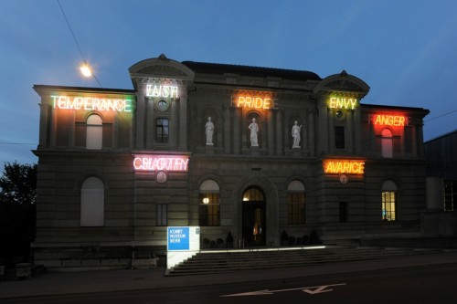 Pictured above: Bruce Nauman, Vices and Virtues, 1983–1988/2008, Neon-Schrift (18-teilig), Courtesy of the artist and Stuart Collection, University of California, San Diego. Photo: Markus Mühlheim © 2010, ProLitteris, Zürich