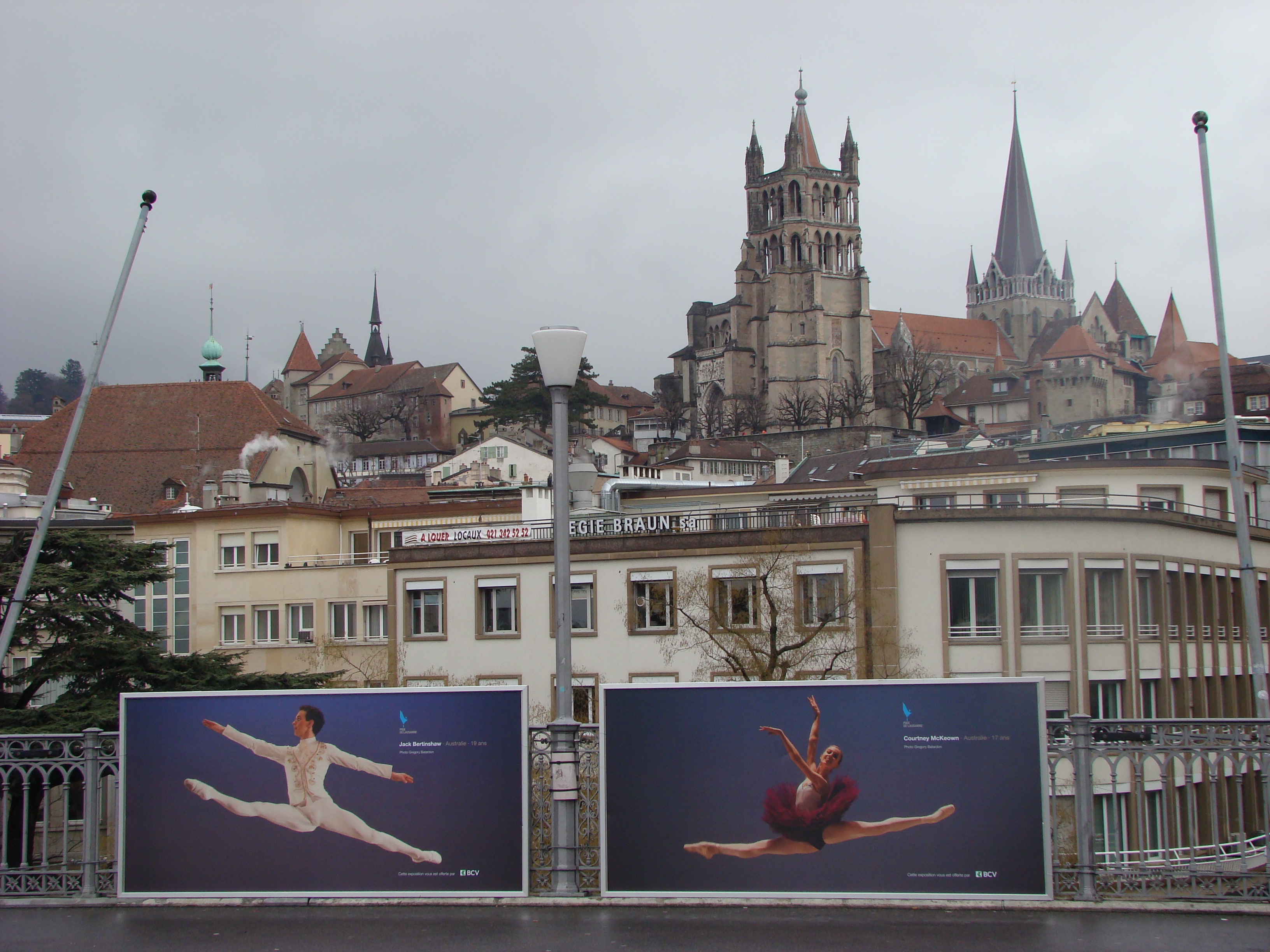 Leading up to the competitions, spectacular large-scale photographs of the participants in the previous editions line a high-flying bridge in Lausanne, giving the impression that they are leaping over the railings.