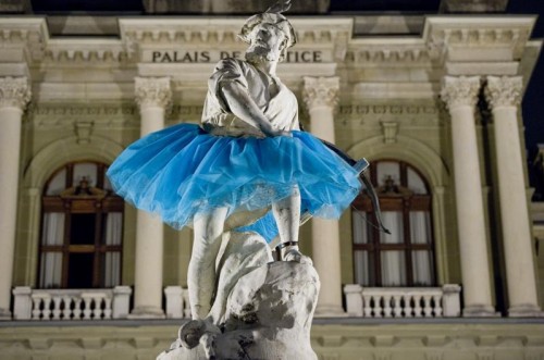 At ground level, a riotously funny guerrilla publicity campaign took place in October 2011: iconic statues throughout Lausanne were dressed in blue tutus during the night to announce the 40th anniversary. They were made to be removed the next day.