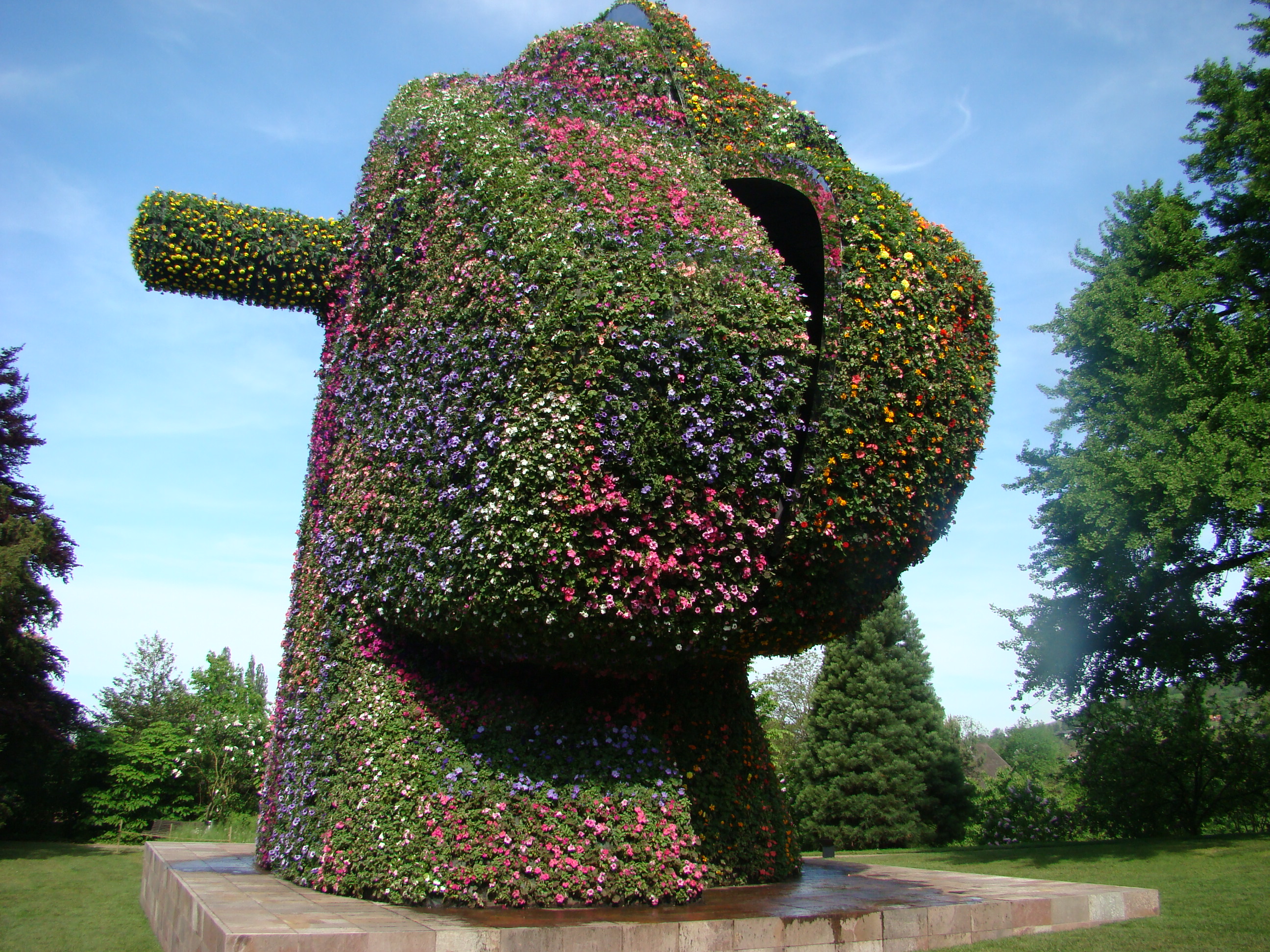 - His first monumental floral sculpture Puppy (1992) is now permanently on display at the Guggenheim Bilbao. A stainless steel armature holds over 70’000 plants in 25 tons of soil watered by an internal irrigation system.