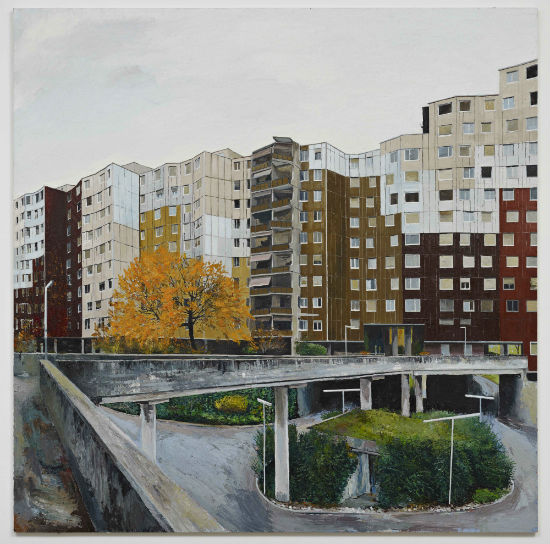 Yves Bélorgey, Les Avanchets, Architectes: Steiger Partner AG, Benjamin Förderer, Franz Amrhein, Février-Mars-Avril 2011, 240 x 240 cm, Huile sur Isorel, Coll. de l’artiste