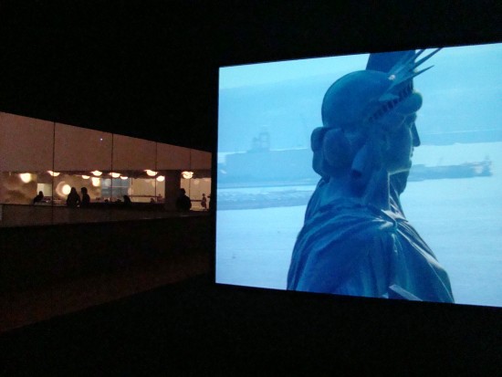 With proud defiance, the Statue of Liberty resists. In a 7-minute film entitled “Static” (2009), a helicopter encircles the icon, the throbbing sound of the wings pounding our ears. One of my favorites.