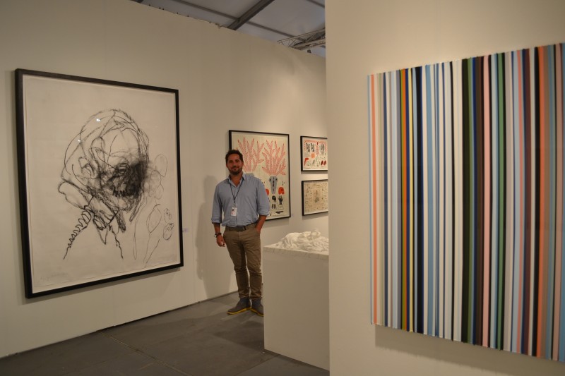 Hans Arp in his Scope booth, where he presents works of strong visual impact. Photo © Michèle Laird