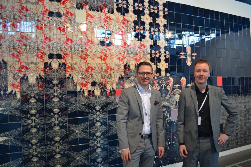 Marko Göhre and Andreas Jenke in front of a large-scale work by Anya Triestram. Photo © Michèle Laird