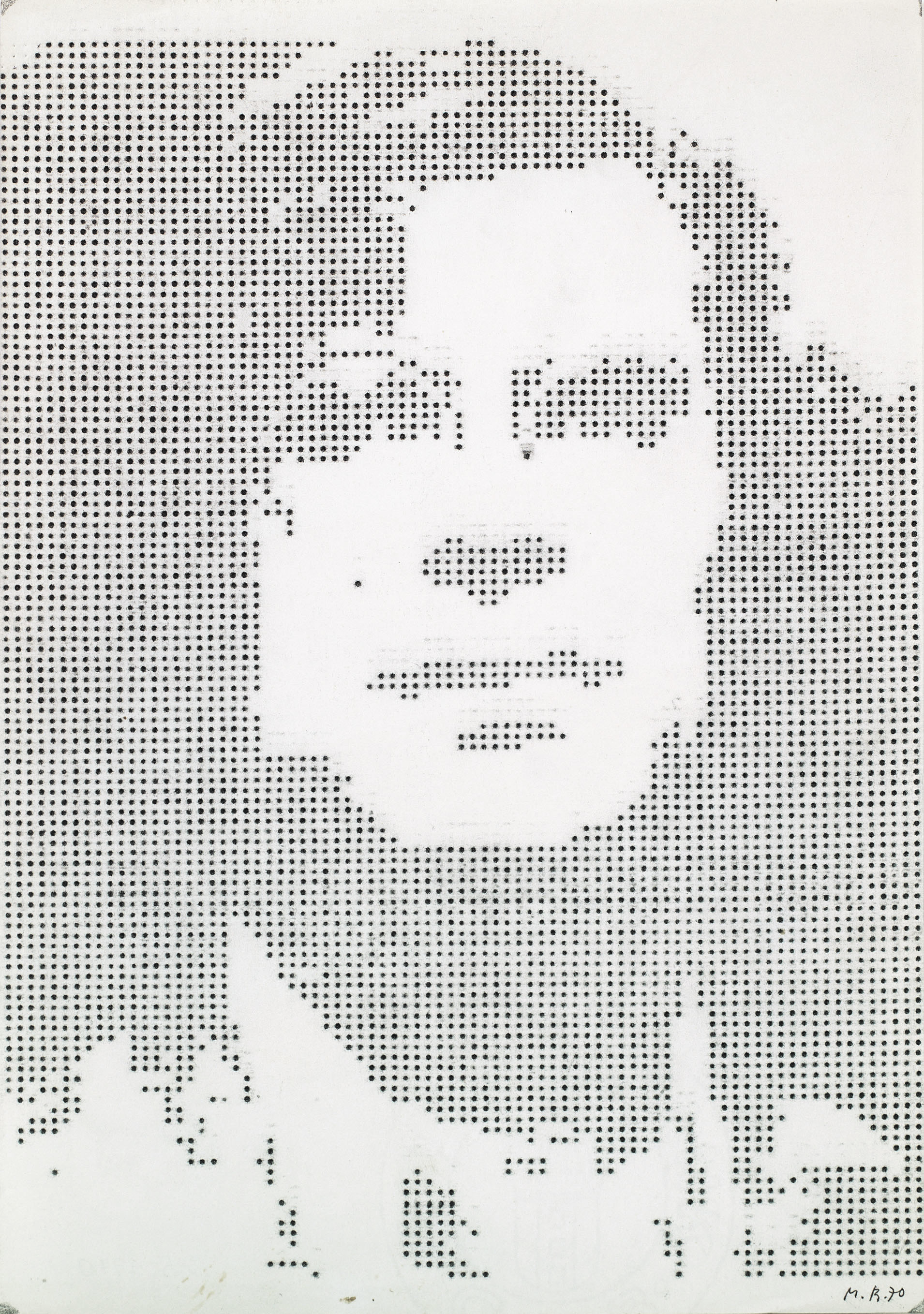 Markus Raetz, Bildnis des Künstlers als Schreibmachinist (Portrait de l’artiste en machiniste à écrire), 1970, Dactylographie, 273 × 203 mm