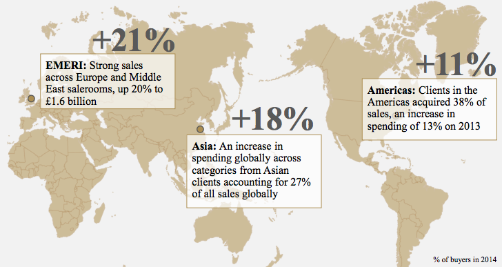Auction houses report global sales up between 12% and 18% in 2014. Pictured on cover: Asian Contemporary Art & Chinese 20th Century Art auction at Christie's, Hong Kong in Nov 2010 - a Zeng Fanzhi painting is shown. Photo: CHRISTIE'S IMAGES