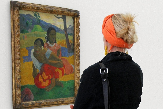 Visitor at Beyeler Foundation looking at Paul Gauguin's «NAFEA faa ipoipo (Quand te maries-tu?)»