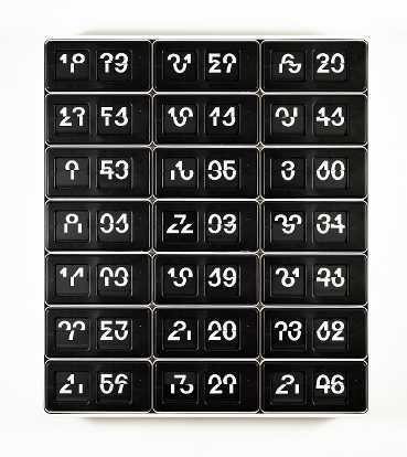 German Formanek commissions 70 workers (in three shifts) to continuously build a digital time display in real time: a work that involves 1,611 changes within a 24 hour period.