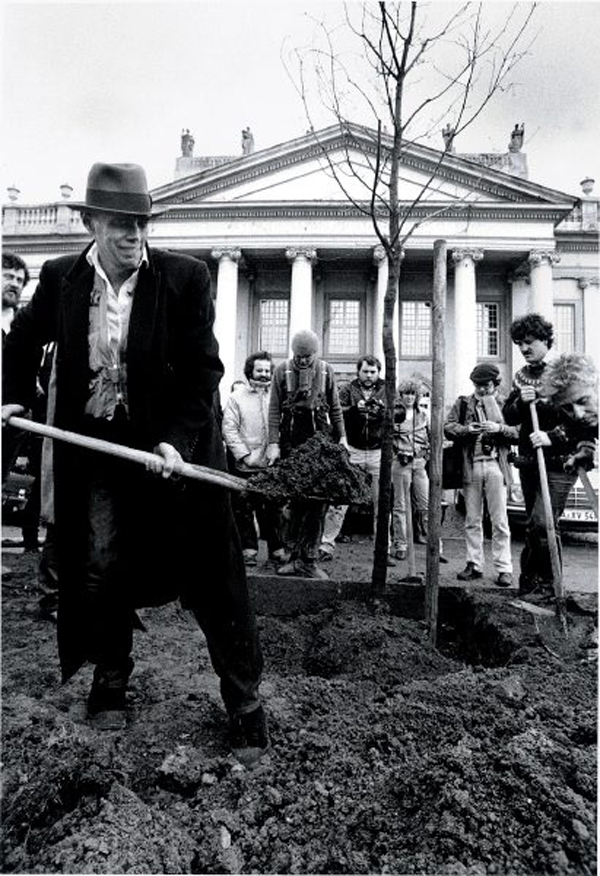 Les premières interventions directes sur l’environnement remontent aux années soixante. Dans «le land art», Robert Smithson et Richard Long façonnaient des sculptures avec les éléments déjà présents dans le paysage, pendant que Joseph Beuys, à partir de 1982, plantait 7’000 chênes dans la ville à l’occasion de la Documenta de Kassel. Flanqués d’une stèle en basalte, ils devenaient des «sculptures sociales», capables d’éveiller notre sensibilité à l’écosystème. La même année, Agnes Denes faisait un pied de nez au capitalisme en plantant un champ de ‘blé’ sur un terrain vague de Wall Street.
