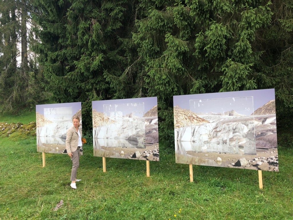 Et qui dit montagne, dit glaciers. L’effet du réchauffement climatique est entré de plein pied dans ALT.+ 1000 avec le collectif Project pressure – Visualizing Climate Change, invité à présenter les œuvres de onze artistes à la Brévine. Fondé en 2008 par Klaus Thymann, le collectif mandate des photographes pour témoigner, à leur façon, de la disparition des glaciers. Mais -ô surprise!- la démarche est pleine de poésie, comme pour créer la nostalgie par la beauté, surtout celle de Noémie Goudal: devant une large photo d’un glacier en péril, elle suspend son duplicata dont l’image se dissout graduellement dans l’eau de pluie.