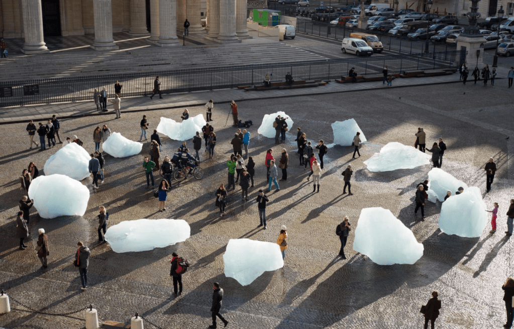 Un art plus militant en relation avec la dégradation de l’environnement et du climat est apparu avec l’agitateur climatique Olafur Eliasson. Depuis 20 ans ses actions coup-de-poing sur la fonte des glaciers et les énergies renouvelables (on se souviendra de son «Weather project» au Tate de Londres) sont portées par des intentions nobles. Il s’égare cependant lorsqu’il crée de spectaculaires chutes d’eau artificielles (à New York et Versailles) dévoreuses d’énergie.