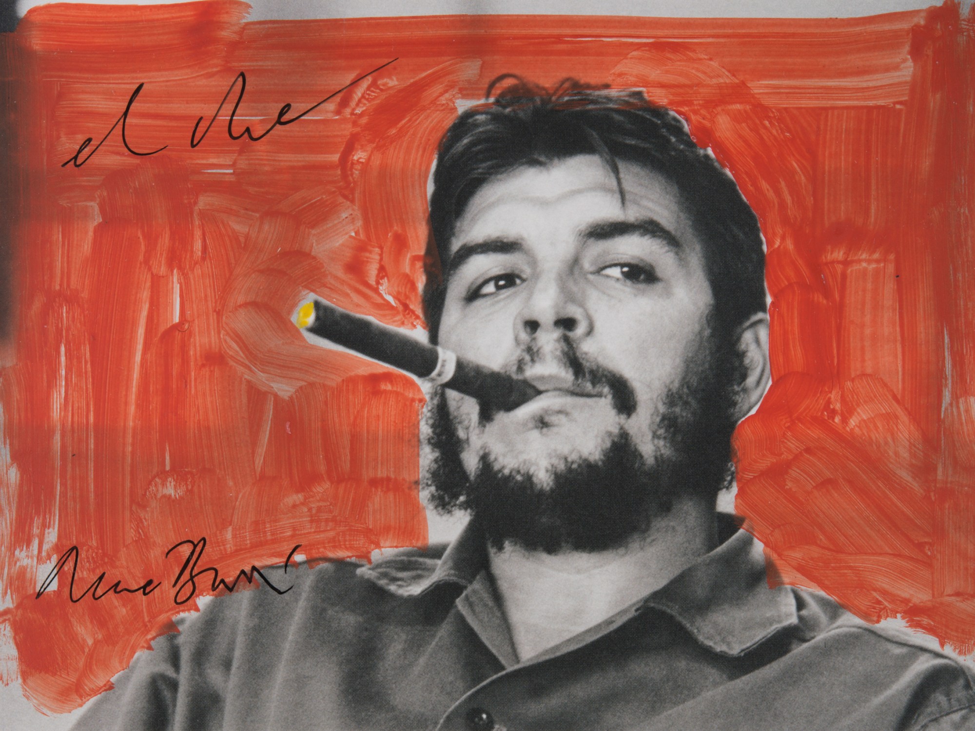 René Burri, El Che, après 2005, Reproduction peinte par Burri sur carton d’invitation de la Rétrospective 2005-2010 à Rotterdam. © René Burri / Magnum Photos. Fondation René Burri, courtoisie Musée de l’Elysée, Lausanne