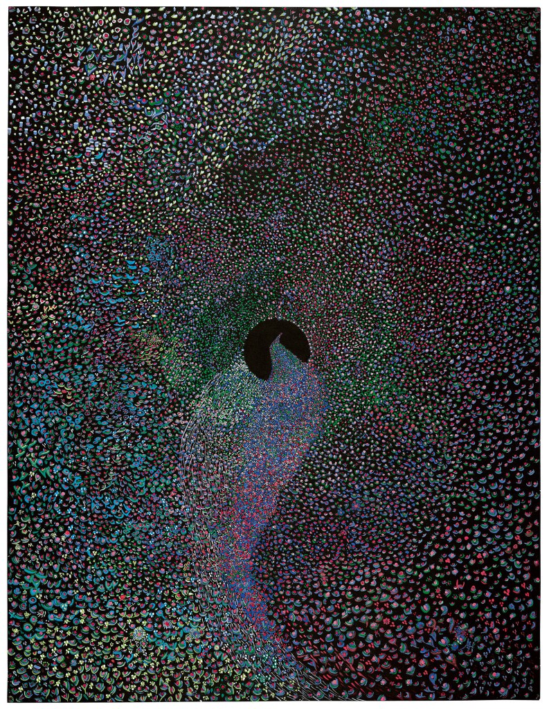 L’enjeu pour la commissaire d’exposition, Pascale Jeanneret, à l’origine du projet, consistait à donner vie à des œuvres si intérieures, si retirées du monde – comme c’est souvent le cas dans l’art brut. Chaque œuvre de Herrera est une forêt de pixels créé à la main.
