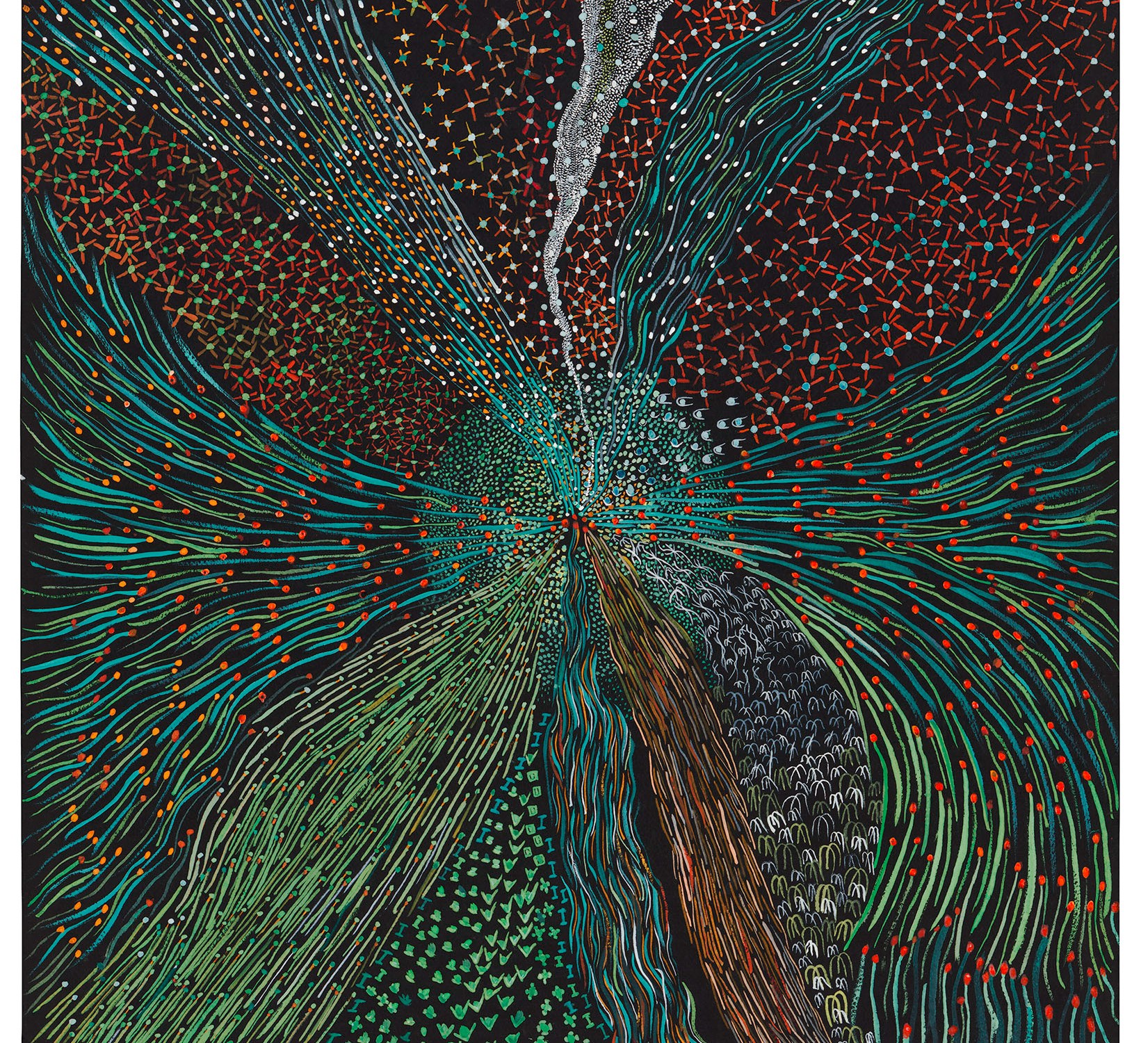 Magali Herrera, Un tema solitario en la musica de las estrelas, 1968, encre de chine blanche et gouache sur papier noir, 65 x 50 cm